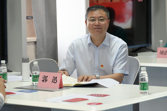 郭迅认真聆听毕业生党员发言,亲切与毕业生党员交流,鼓励全体毕业生党员要勤奋学习、始终保持前进的姿态;要努力工作、不讲代价,践行党员不怕苦、能吃苦的实干精神;要低调做人,在工作岗位上保持谦逊的态度,努力成为各个岗位上的榜样模范。